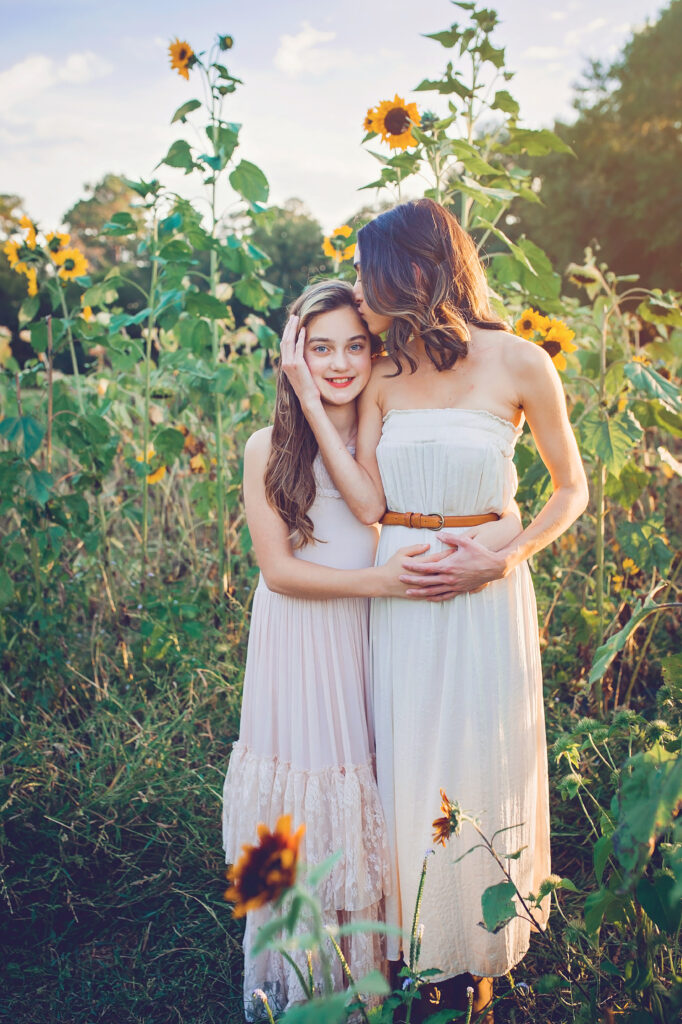 3. Mom and son/daughter moment! Pose child, boy or girl, hugging into mom facing each other or have mom hug from behind and wrap her arms around chest. Ask mom to grab her child’s cheek on the side facing the camera, make sure the hand isn’t completely covering the face, place lower in the face. Then ask mom to whisper something in child’s ear that makes mom happy about said child. Create emotion in your shots by adding emotion through words. Take the time to get different angles. Ask mom and child to look at you, look at each other, have mom kiss child on their head and then have mom tickle child to add fun to the moment!