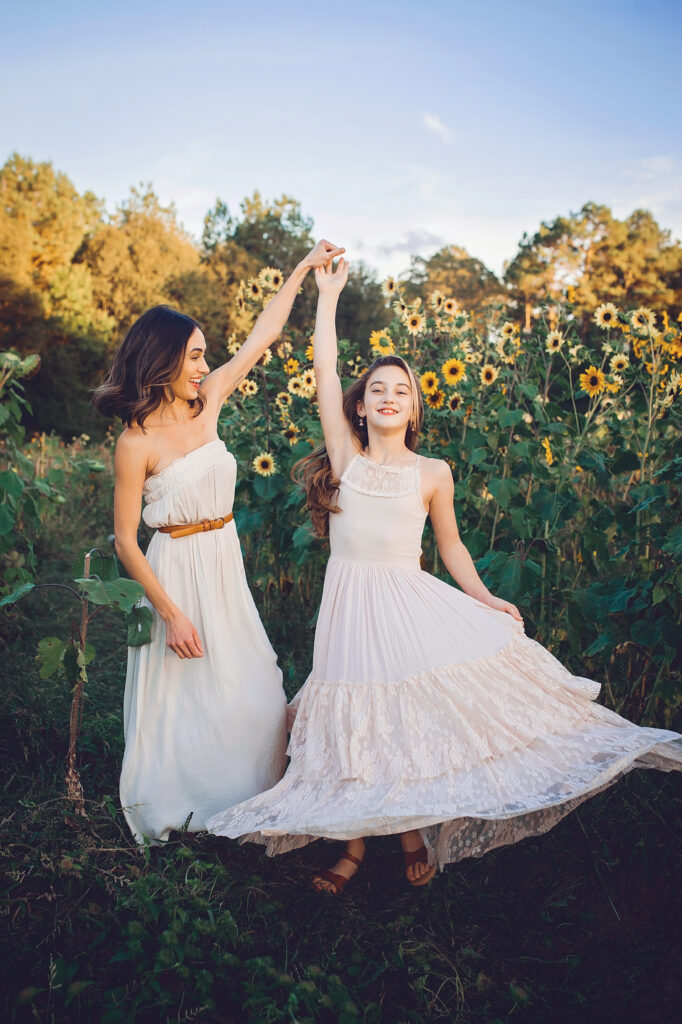 2. You are NEVER too old to be twirled by your daddy(or your mama)! Have dad (or mom) and daughter hold hands side by side. Then have dad spin daughter! This is such a sweet moment. Always Daddy’s little girl. Make sure you ask daughter to look at dad as she comes back around, also have her look at the camera as she comes back around, finally, make sure dad is smiling down at her. This also works with two daughters at once. Have dad spin them both. If daughter is wearing a dress, have her hold it with her free hand to create more movement
